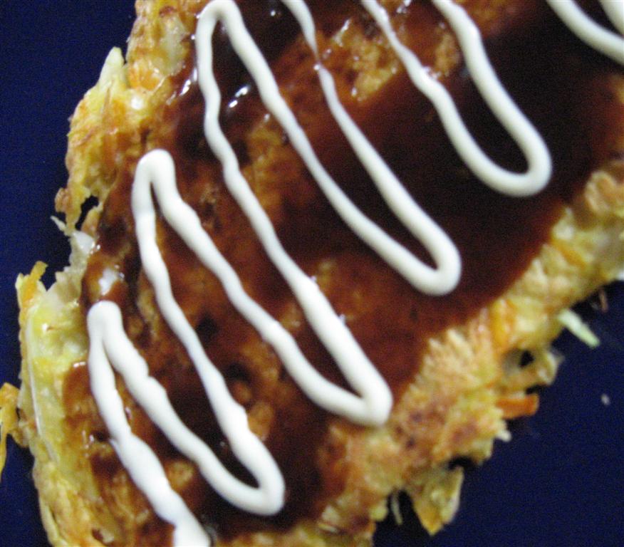 To serve, turn out on to a warmed plate, spread (or drizzle) about 2-3 tablespoons of teriyaki sauce over the top, then a similar amount of mayonnaise. Sprinkle with powdered seaweed or sesame seeds if desired. Cut in half and serve.